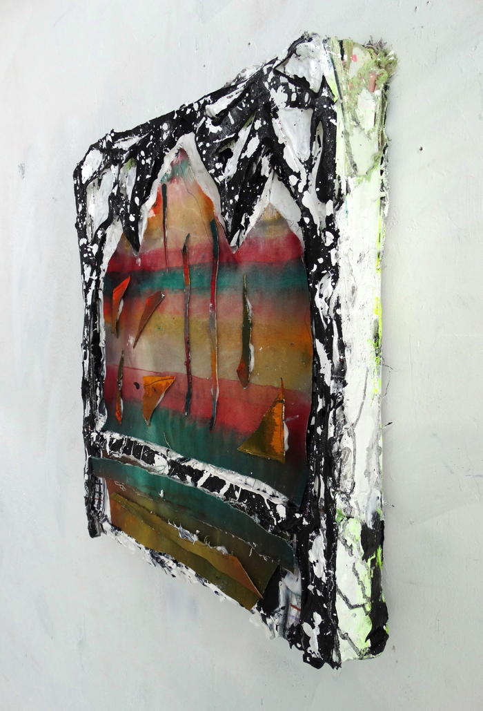 Babalon 2015. gesso, acrylic, and super gel on canvas adhered to wood panel. 25in x 20.5in