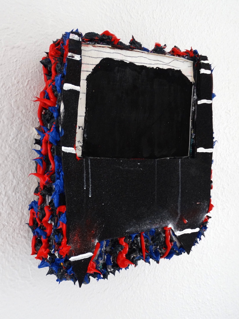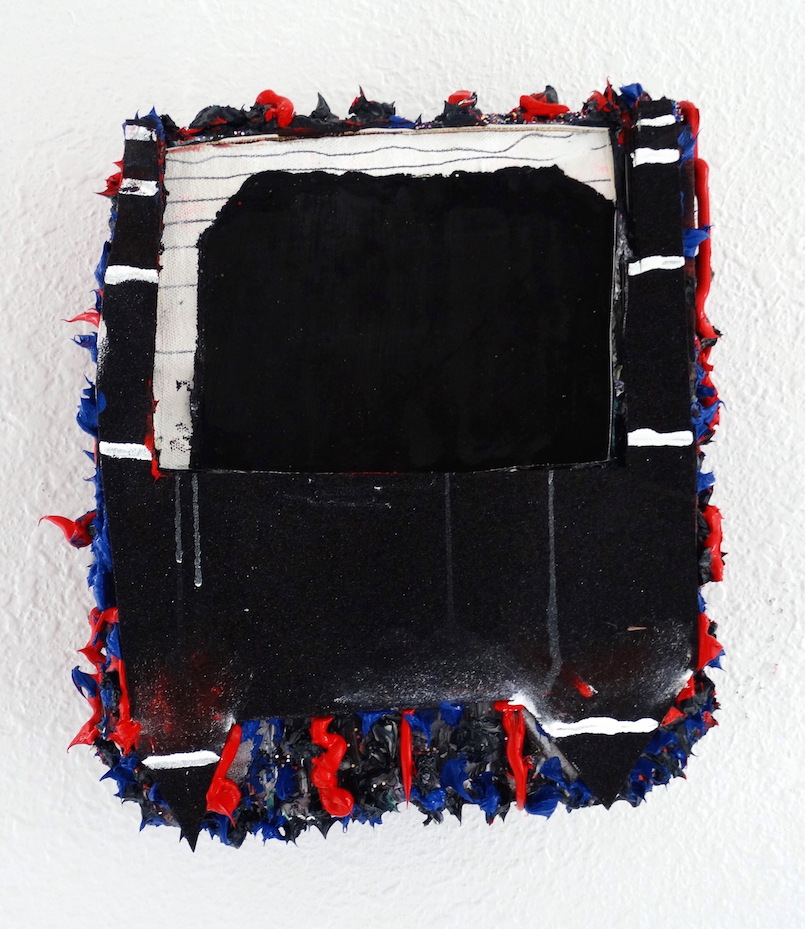 BaeWolf 2016. gesso, acrylic,silver leaf, foam paper, and oil paint on canvas adhered to wood panel. 11in x 9in x 3in
