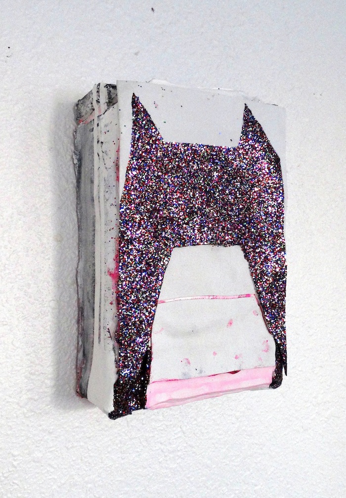 Cali Baby 2015. gesso, acrylic, and super gel on canvas adhered to wood panel. 12in x 8in x 4in