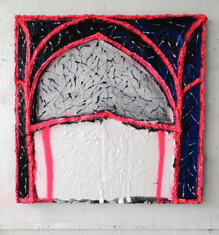 Divine 2015. gesso, acrylic, oil paint, and sparkles on canvas adhered to wood panel. 48in x 48in
