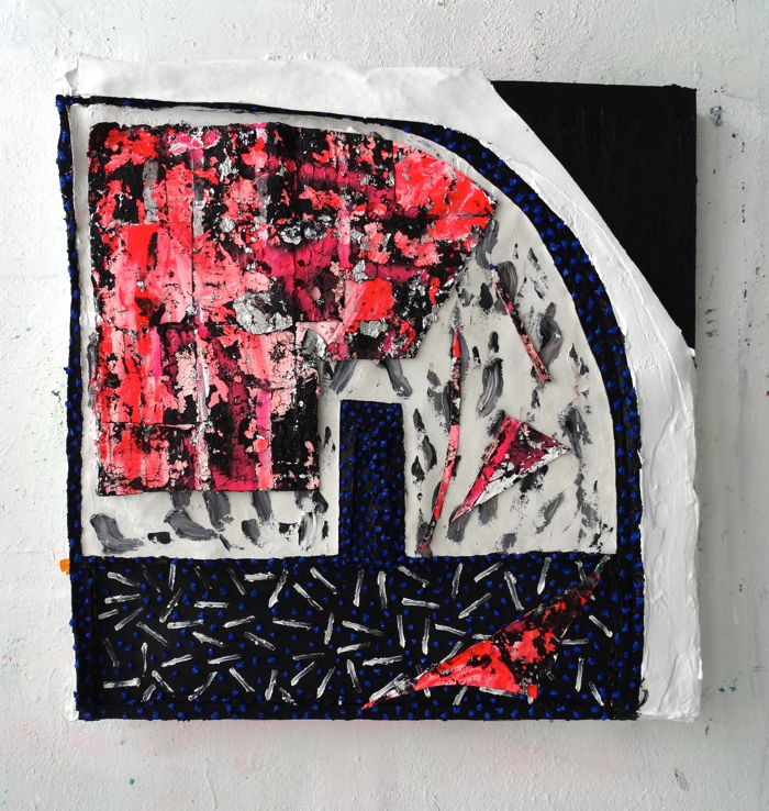 Empire Of Dirt 2015. gesso, acrylic, oil paint, and super gel on canvas adhered to wood panel. 35in x 35in