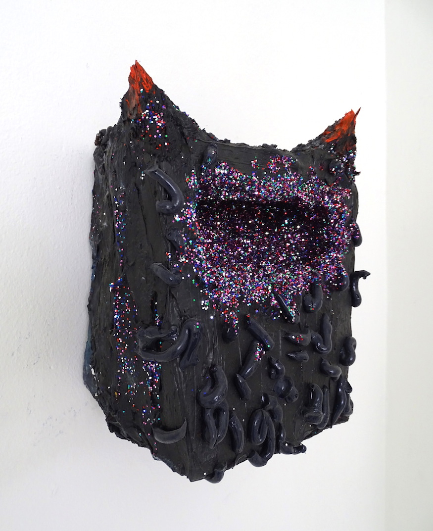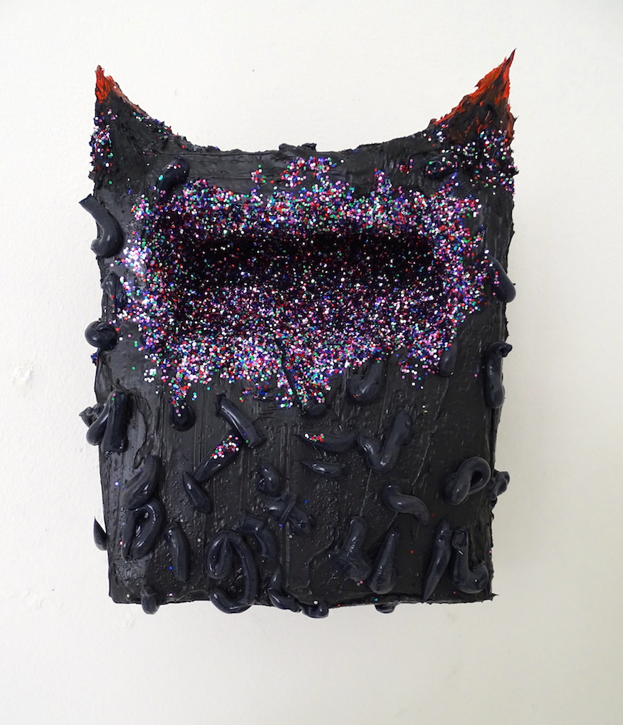 Jawbreaker 2017. oil paint and sparkles on wood panel. 10.5in x 8in x 6.5in