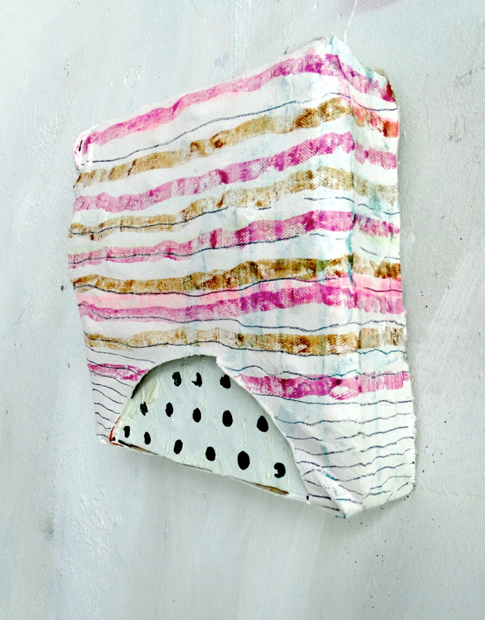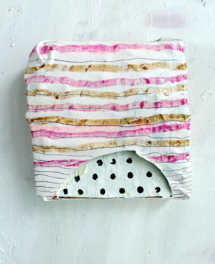 Lady Bug 2014. acrylic, prisma color maker, gesso, and canvas on canvas adhered to wood panel. 8in x 8.5in