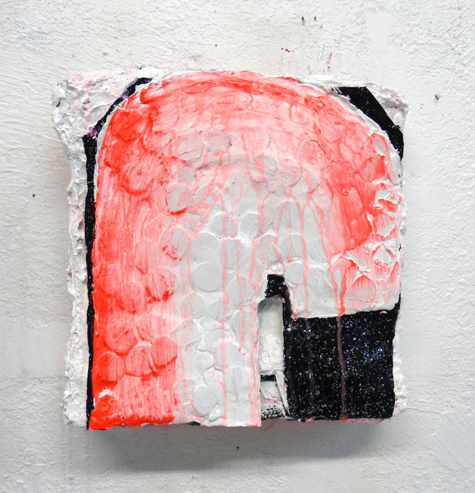 Liquid Asset 2014. gesso, acrylic, sparkles, and super gel on canvas adhered to wood panel. 12.5in x 12.5in