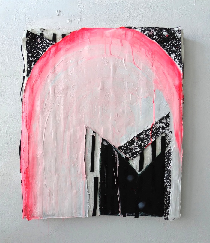 Moon Unit 2014. acrylic, super gel, sparkle foam, gesso, and canvas on canvas adhered to wood panel. 40in x 36in