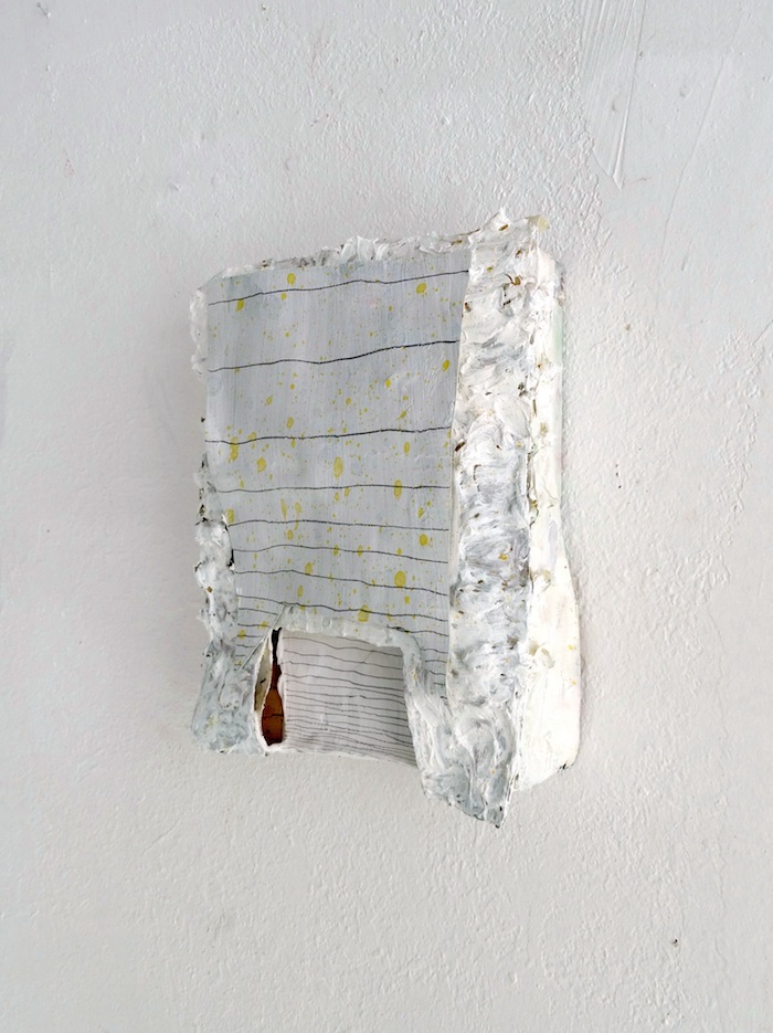 Partly Cloudy 2014. oil paint, gold leaf, gesso, acrylic, and super gel on canvas adhered to wood panel. 11.5in x 8.5in