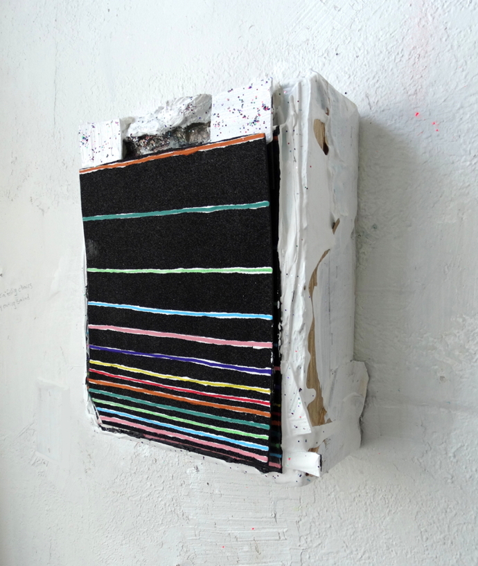 Patience 2014. gesso, acrylic, sparkle foame, paint marker, and super gel on canvas adhered to wood panel. 12.5in x 10.5in