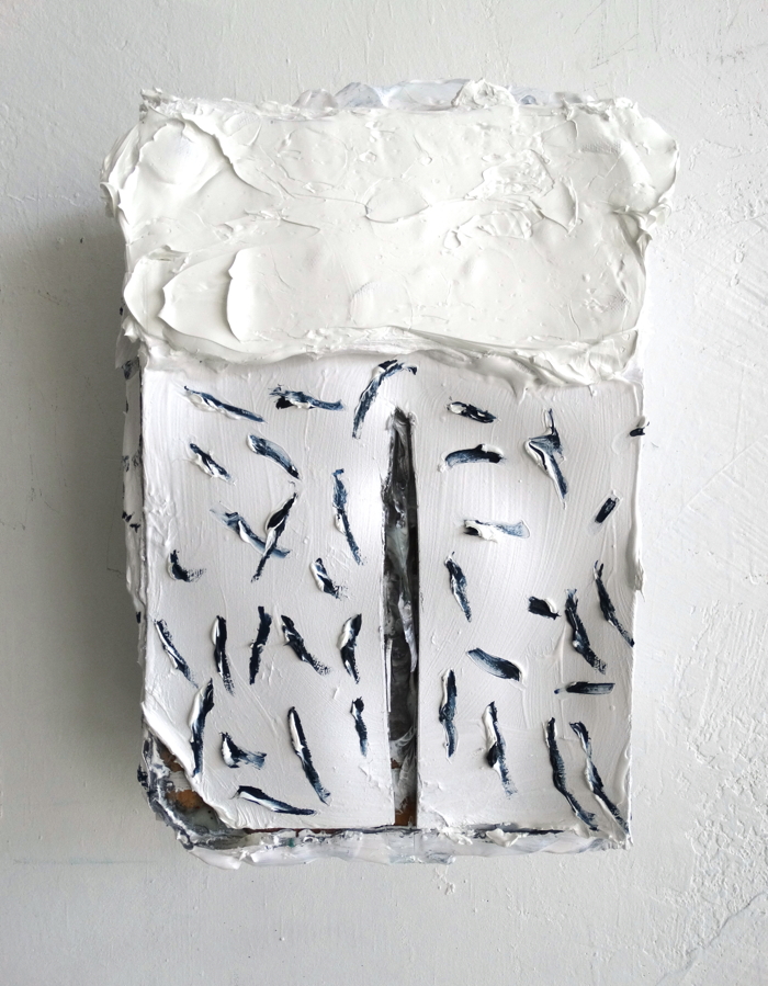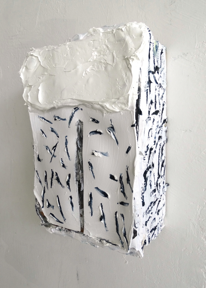 Two Cities 2015. gesso, acrylic, oil paint, and super gel on canvas adhered to wood panel. 13in x 9in
