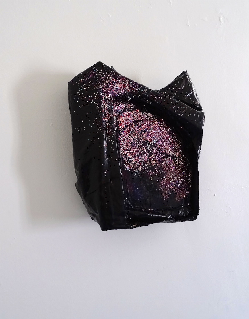Unicorn With A Horn 2017. gesso, acrylic, sparkles, and super gel on canvas adhered to wood panel. 14in x 12in x 5in